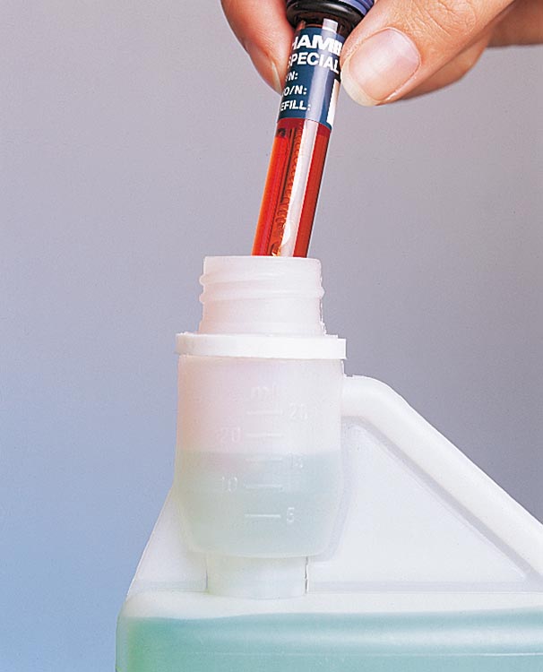 DURACAL buffers are guaranteed to be stable for 5 years(*) from the date of production. Conventional pH buffers change their pH value due to air diffusion during storage and use. Duracal buffers do not change their pH value during storage or use. The unique dosing bottle allows sensor calibration in the bottle without reservoir contamination.