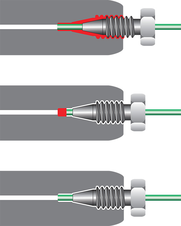 Picture: Correct fitting/capillary connection (dead volume in red)