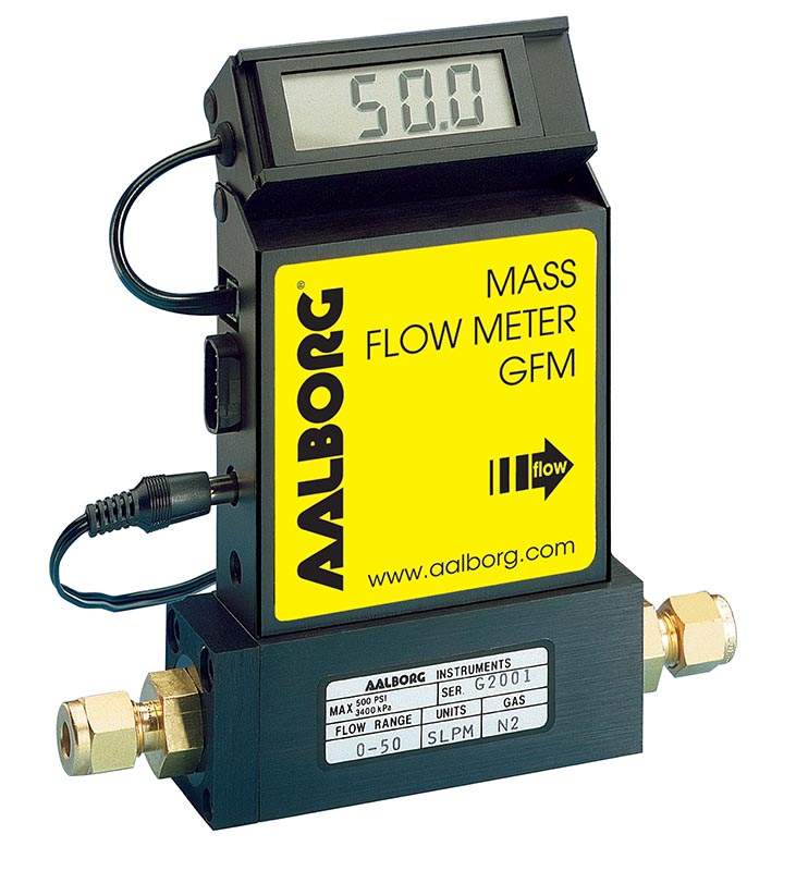 Mass flow meter Compact, self-contained GFM mass flow meters are designed to read flow rates of gases. The rugged design coupled with instrumentation grade accuracy provides versatile and economical means of flow measurement.