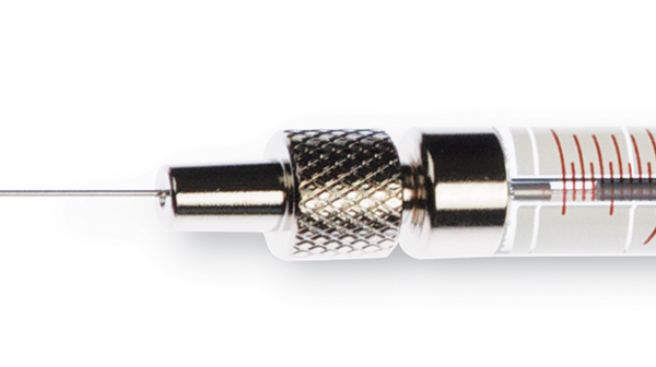 Ta strzykawka o mikroobjętości jest przeznaczona do stosowania z płynami i zawiera wyjmowaną igłę (radełkowana nasadka). Ta strzykawka ma wyporność i nie ma objętości martwej.