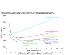 Meteoric Core C18 i Meteoric Core C8 mogą skrócić czas analizy o dwie trzecie w porównaniu z konwencjonalnymi, w pełni porowatymi kolumnami o tych samych wymiarach, przeprowadzanymi w ramach tej samej analizy. Teoretyczna liczba półek jest utrzymywana przy dwukrotnie szybszym przepływie w Meteoric Corecolumn w porównaniu z kolumnami w pełni porowatymi, a rozdzielczość jest utrzymywana przy ciśnieniu roboczym poniżej 340 barów.