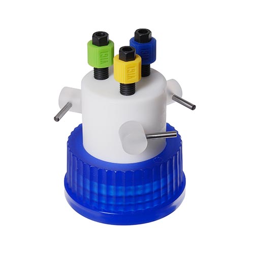 Uzáver Safety-Cap pre fľaše s mobilnou fázou, závit GL45, 3 vstupy, vrátane ventilov